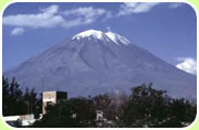 The volcano that towers over the town has a permanent snowy Cap. It stands at 5825 high, and it is possible to hire a guide at one of the many tourist agencies to provide you with the necessary equipment, and to guide you safely up the mountain. Most agencies also offer climbing tours to Chachani, a more challenging 6000 m. mountain nearby.